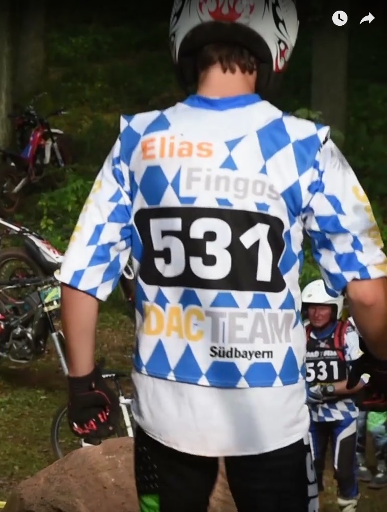 In meiner Klasse starten 38 Fahrer. Pfitze und ich fahren zur 1. Sektion, Papa mit dem Rad hinterher. Pfitze darf nicht in die Sektion - nur ich, aber er darf mir von außen Tipps geben, wie ich am besten Fahren soll. Das ist anders als beim Alpenpokal. Erst beim Fahren darf der Betreuer nach Anmeldung beim Punktrichter in die Sektion, um an schwierigen Stellen evtl. zu Helfen oder meistens als Berater, damit man sich sicherer fühlt. Nach zwei Stunden sind wir mit der ersten Runde durch. Ich hab leider 16 Füße in der ersten Runde gehabt. Insgesamt habe ich am Samstag 40 Füße. Der beste 7 und somit lande ich auf dem 17. Platz. Abends findet die Pokalverleihung statt. Am Samstag wurde zusätzlich zur JDM auch der ADAC Bundesendlauf mit Mannschaft und Einzelwertung ausgefahren. Ich war in der 3. Mannschaft vom ADAC Südbayern. In jeder Mannschaft sind 4 Fahrer aus den Klassen 5-2. Meine Mannschaft belegte den 15. Platz. Die Stimmung war gut, es wurden viele Pokale verteilt.